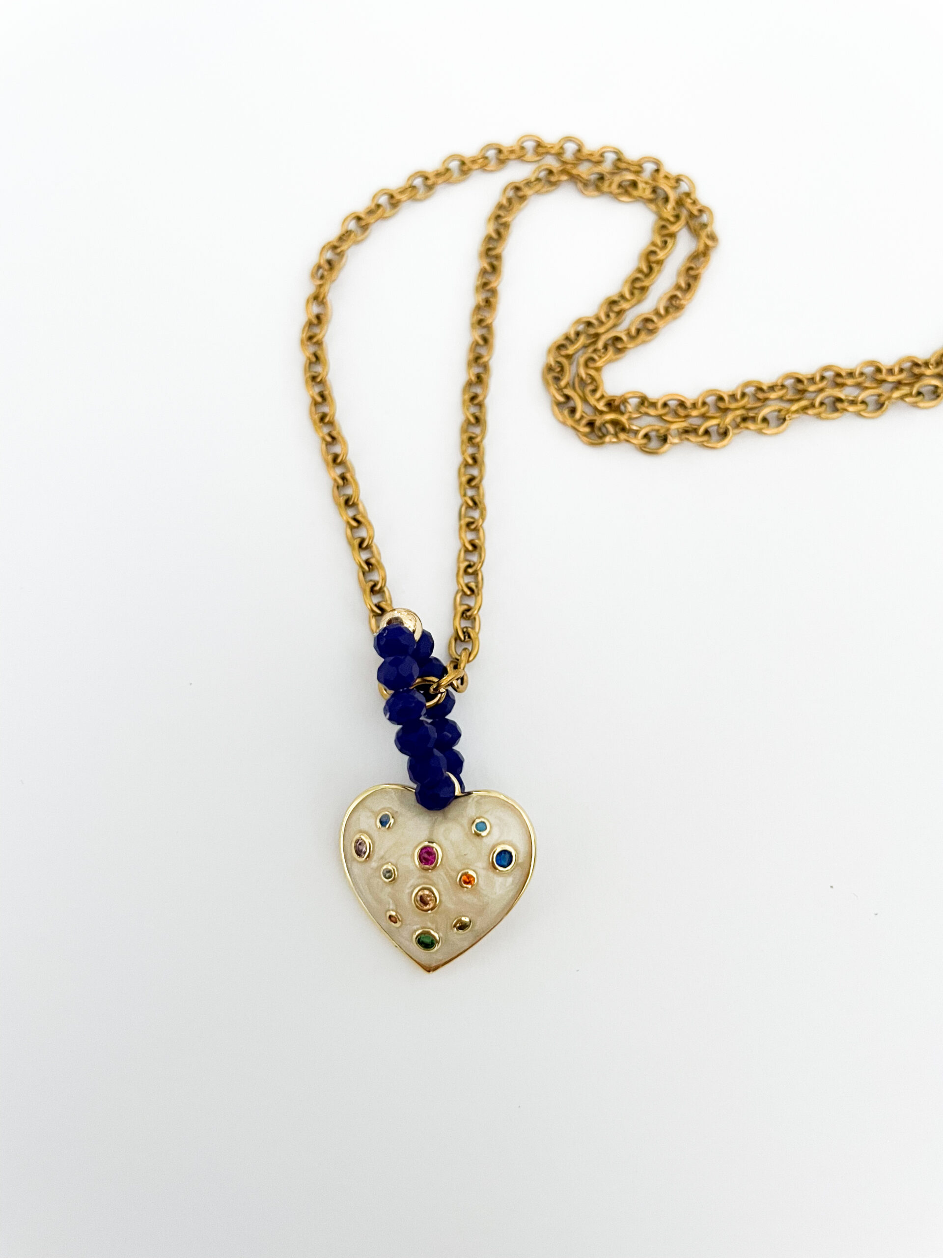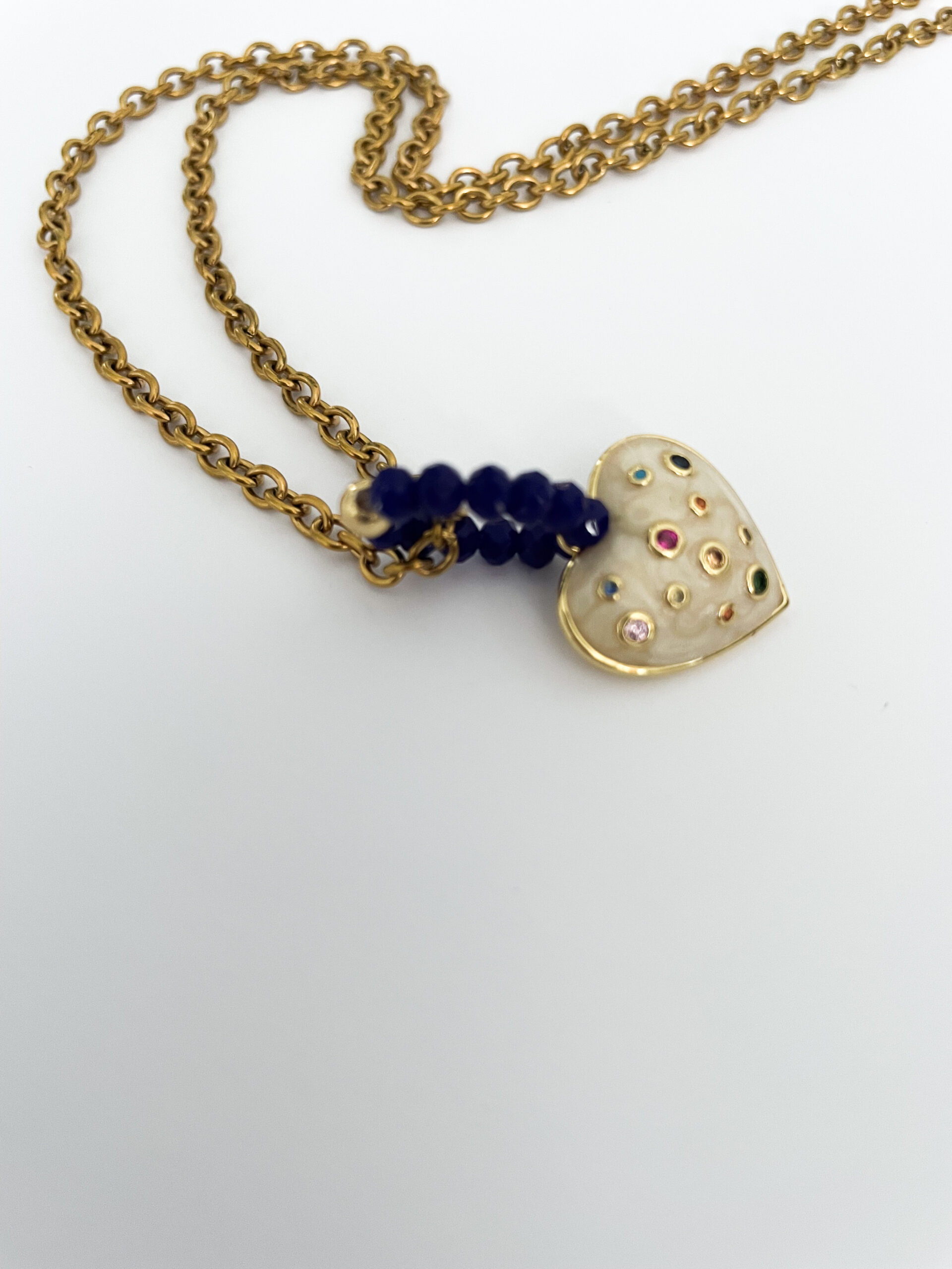 Collar de acero inoxidable con cadena de 45 cm y colgante en forma de corazón esmaltado, decorado con delicadas circonitas multicolor que aportan brillo y personalidad a la pieza.