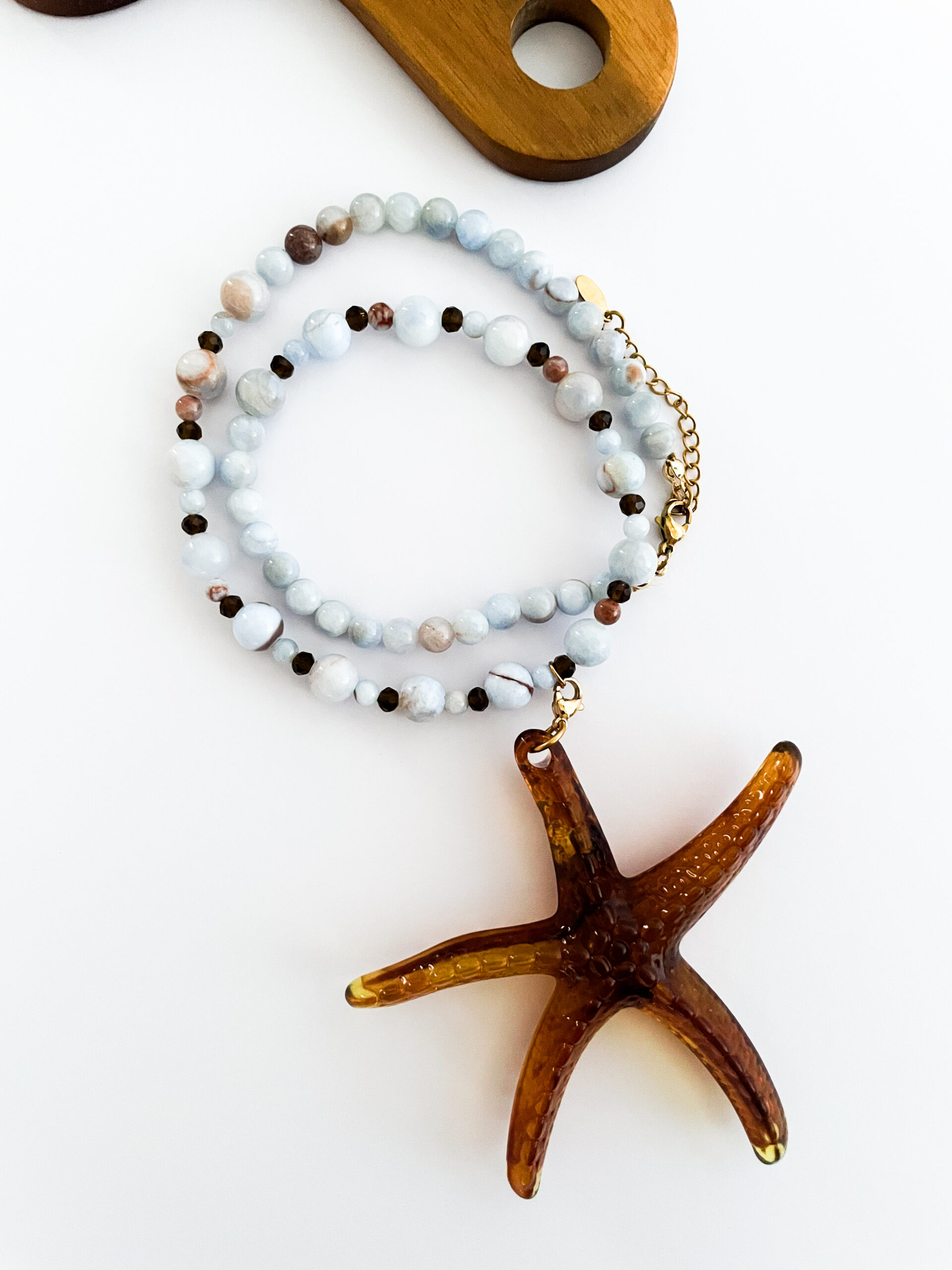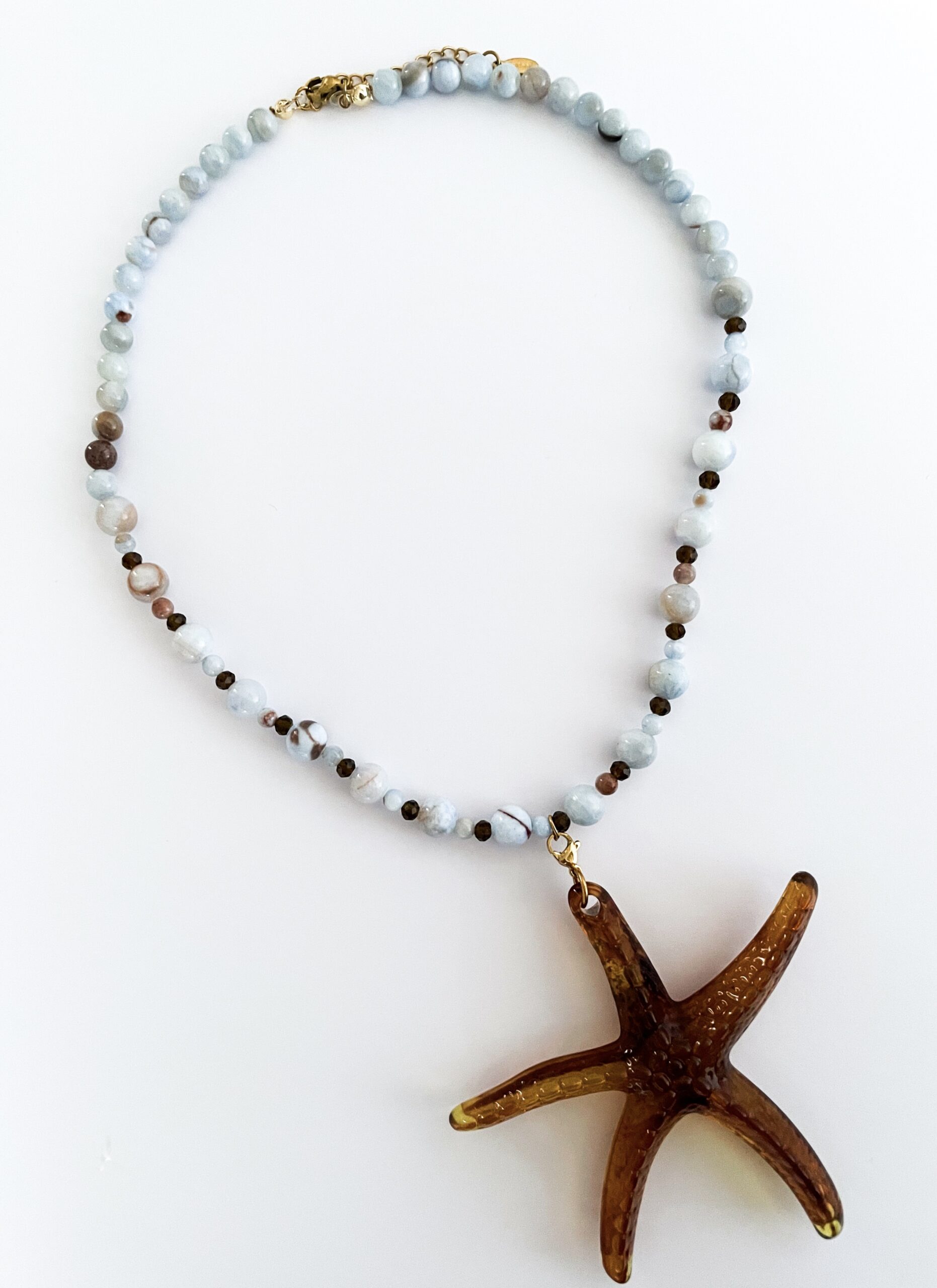 Un diseño pensado para llevar de dos formas: con la estrella como pieza protagonista o sin ella, para un look más sencillo. Ideal para looks de verano y para combinar con otros collares