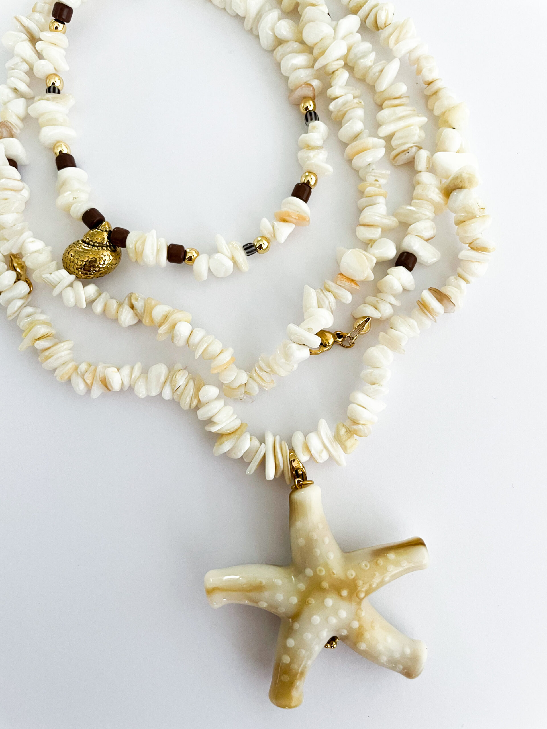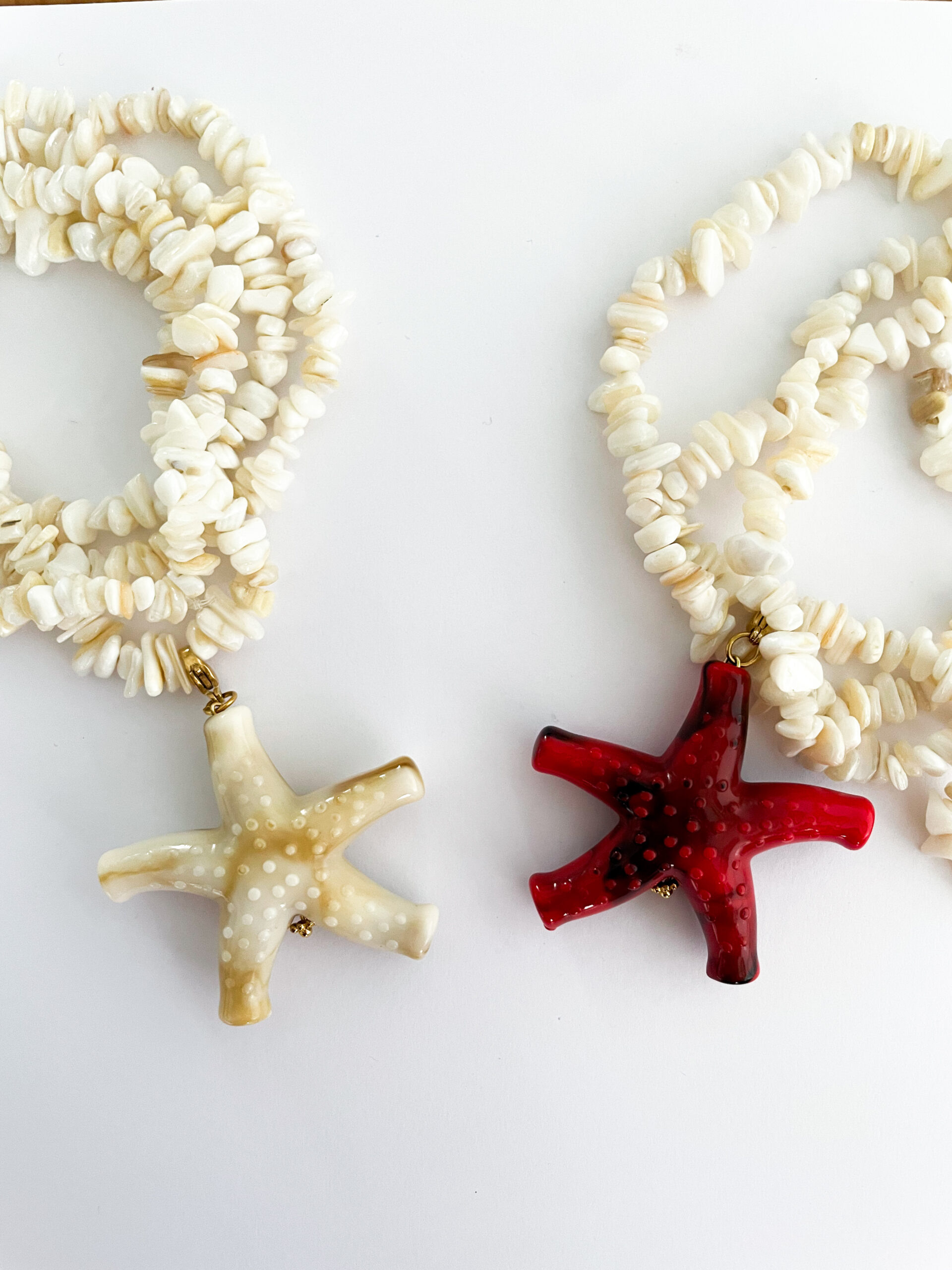 El collar Mara es pura esencia mediterránea. Con coral blanco natural y una estrella acrílica protagonista de 5 cm, crea una pieza versátil y con carácter, pensada para transformar cualquier look.