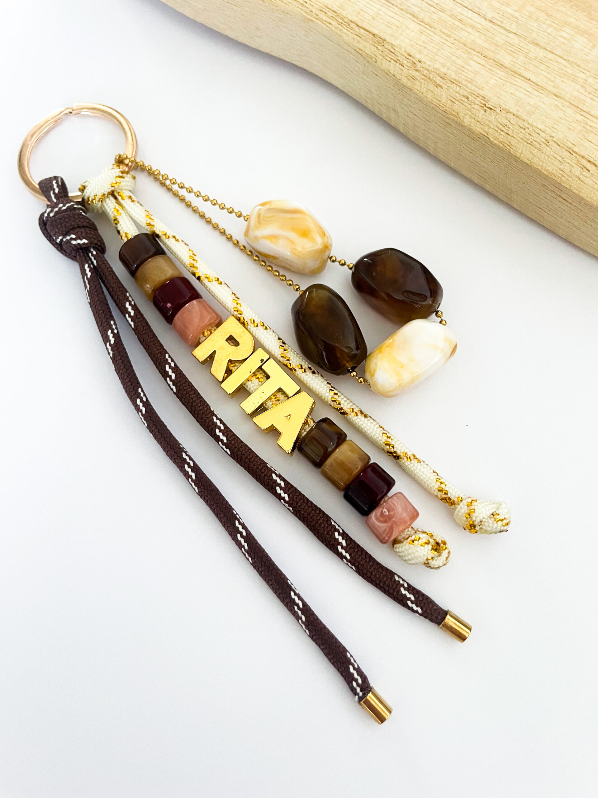 Añade un toque único a tus llaves, bolso o mochila con nuestro llavero artesanal personalizado. Cada pieza está creada con una cuidada combinación de cordón trenzado, cuentas decorativas en tonos elegantes y un acabado dorado que aporta un look sofisticado y actual.