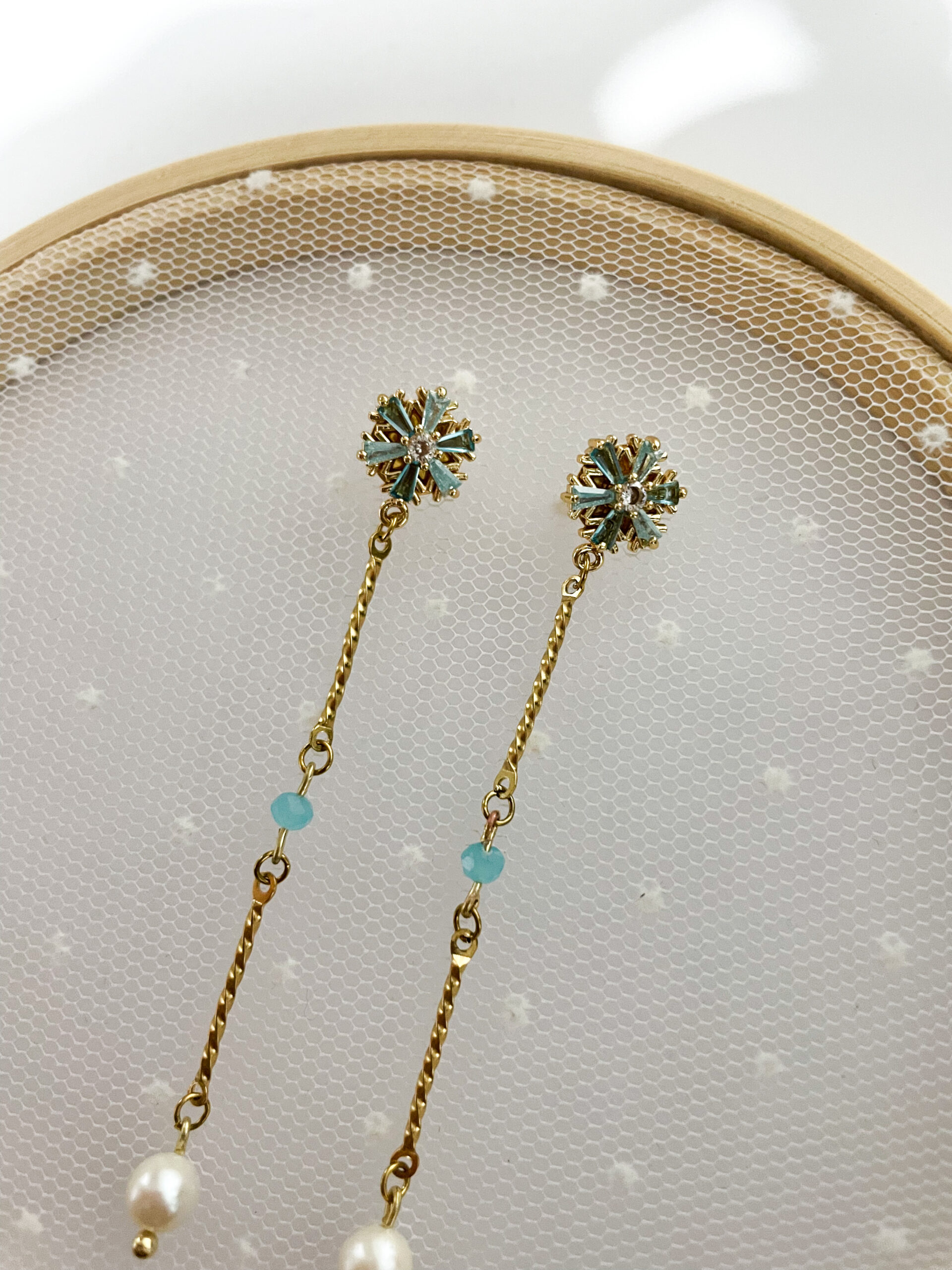 Los Pendientes Glacia evocan la belleza sutil del hielo y la luz difusa del invierno. Un diseño delicado y femenino que combina brillo y movimiento, ideal para aportar un toque joya sin exceso.