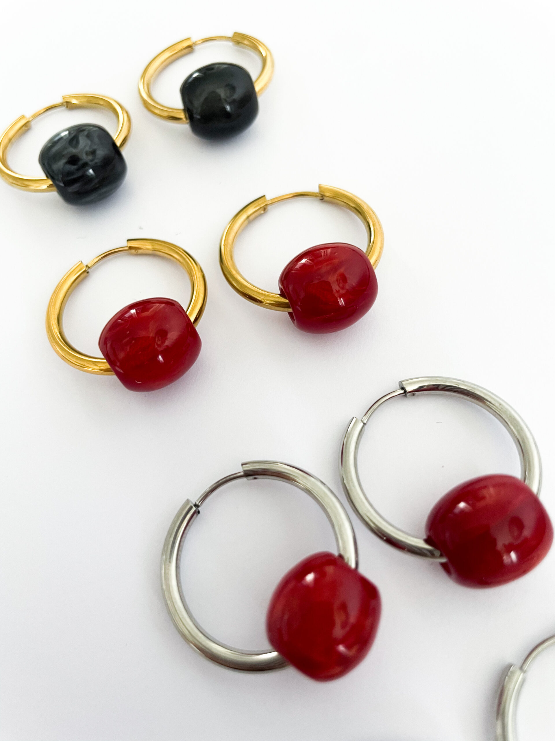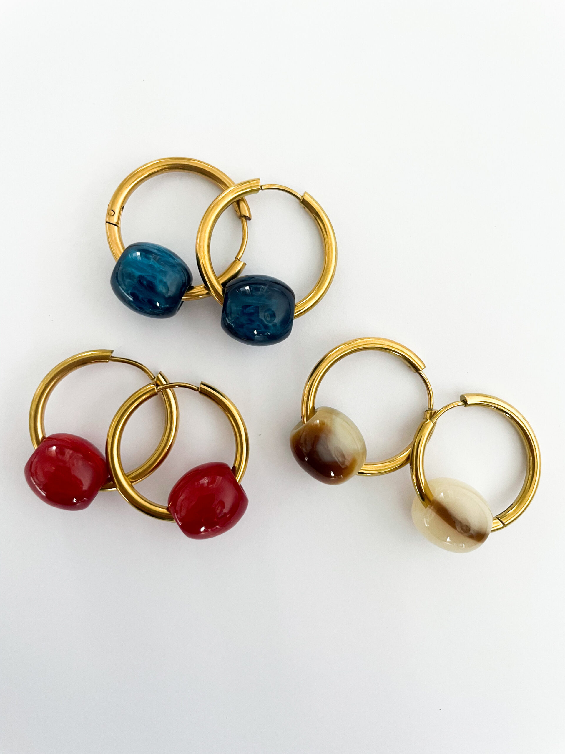 Aros con personalidad, ligeros, cómodos y súper favorecedores. Su diseño combina un aro de acero inoxidable (disponible en acabado plateado o dorado) con una preciosa pepita de color que puedes quitar y poner para jugar, combinar y cambiar cuando quieras. Perfectos para darle un toque divertido y especial a cualquier look… ¡y sí, querrás coleccionarlos todos!